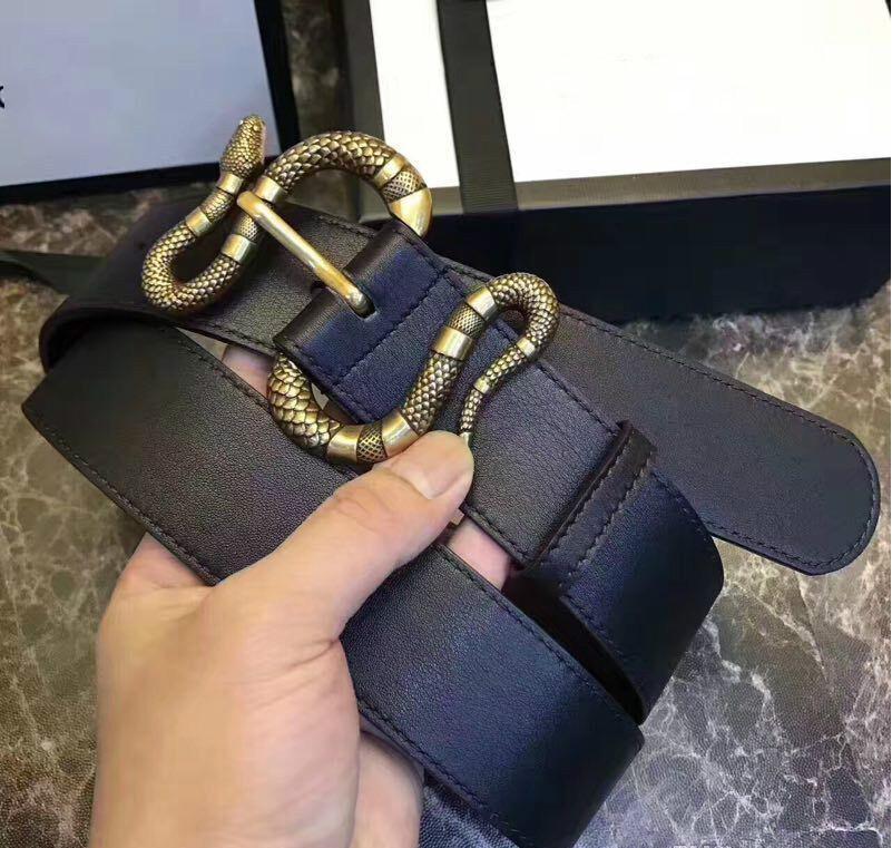 The snake continues to be a distinguishing symbol for Gucci. The serpentine buckle is designed to appear as if it's wrapping around the leather strap.