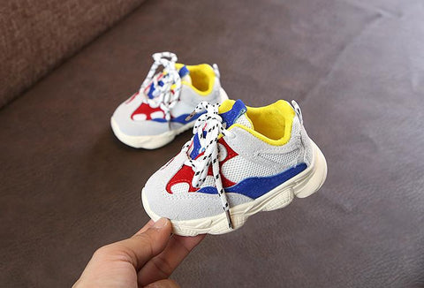 Buy your beloved baby with our stylish running shoes sneaker. There are 3 variety colors which are Blue Red, Green Pink, and Purple Pink. Its made of rubber to fit with the small baby size.