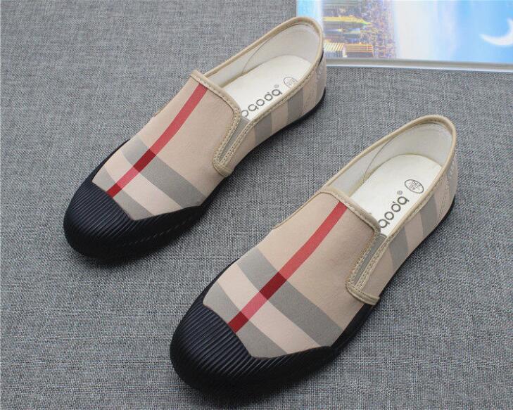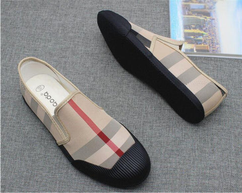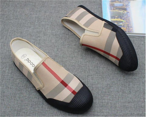 Men Canvas Leather Loafers Shoes Khaki Red Stripe