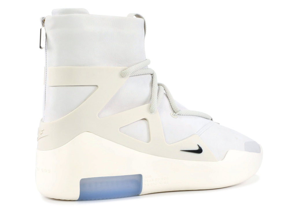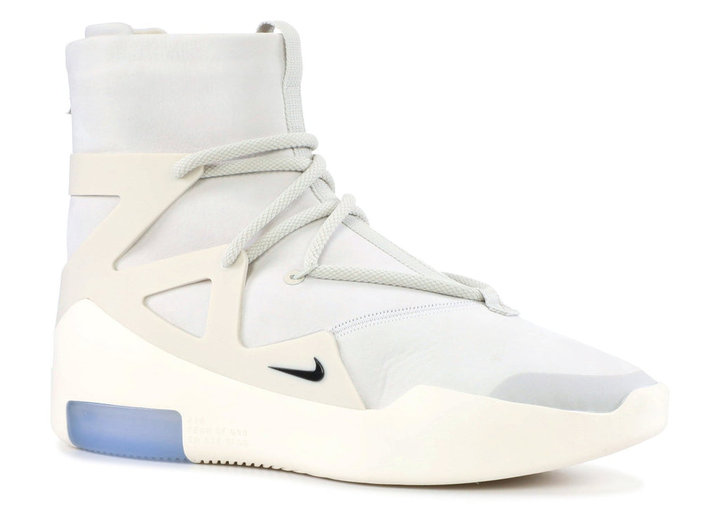 Step into the bright lights while wearing the Air Fear Of God 1 Light Bone. This FOG1 comes with a grey upper, black Nike “Swoosh”, white midsole, and a translucent sole.
